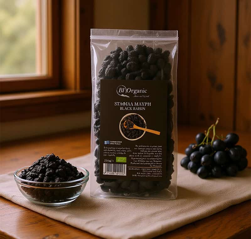 - Μουλιάζουμε τις σταφίδες σε ένα μικρό μπολ με ζεστό νερό για 10 λεπτά και έπειτα τις στεγνώνουμε πολύ καλά.